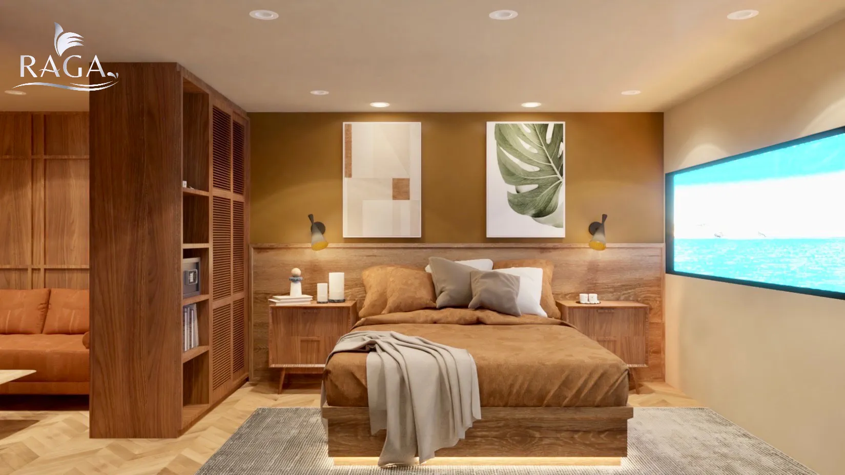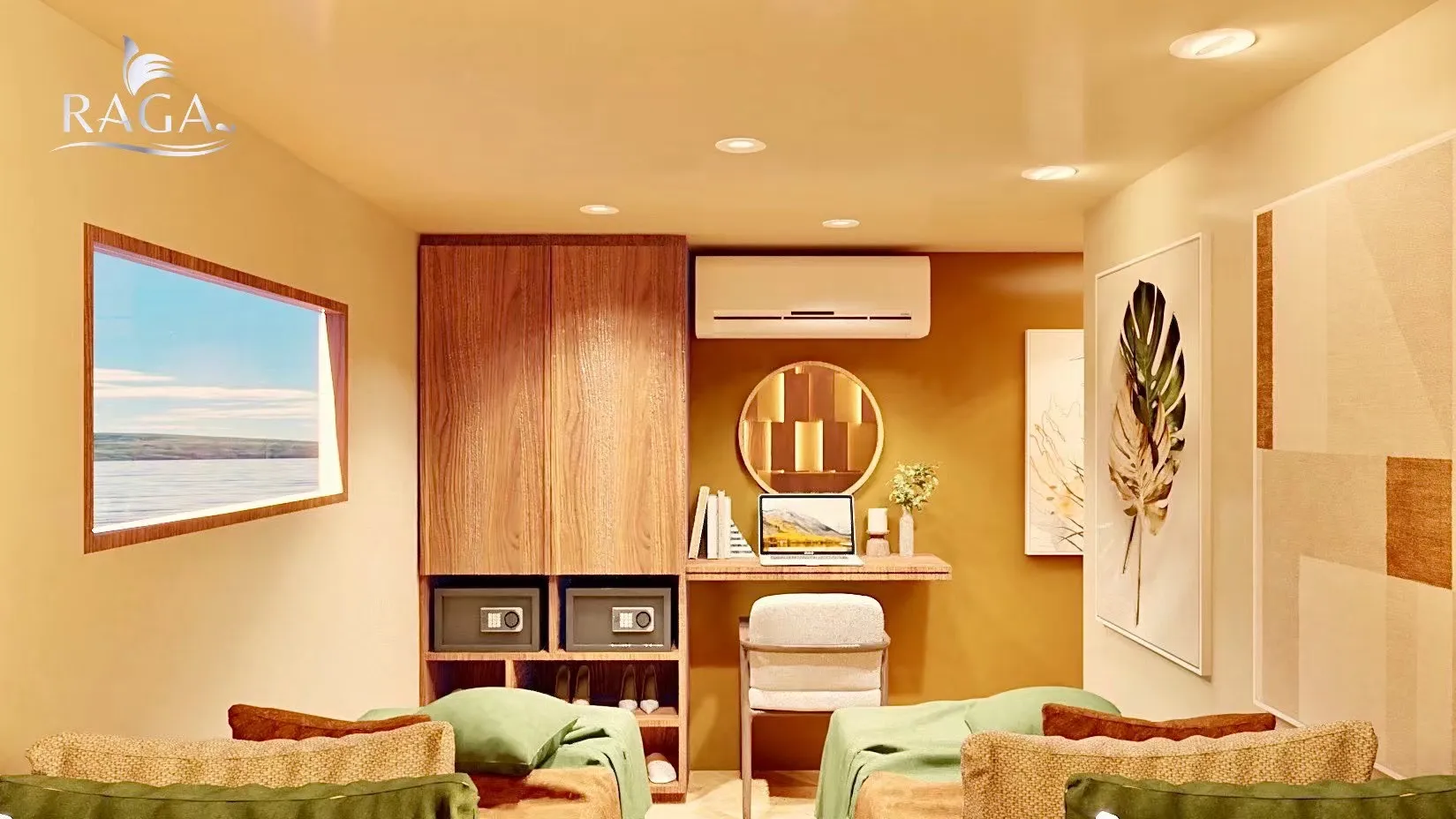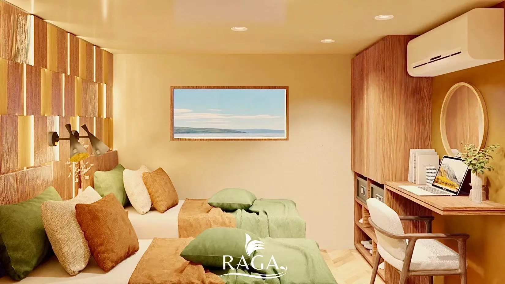 MV Raga can accommodate 26 guests in its 13 air conditioned cabins. All cabins have an ensuite bathroom.